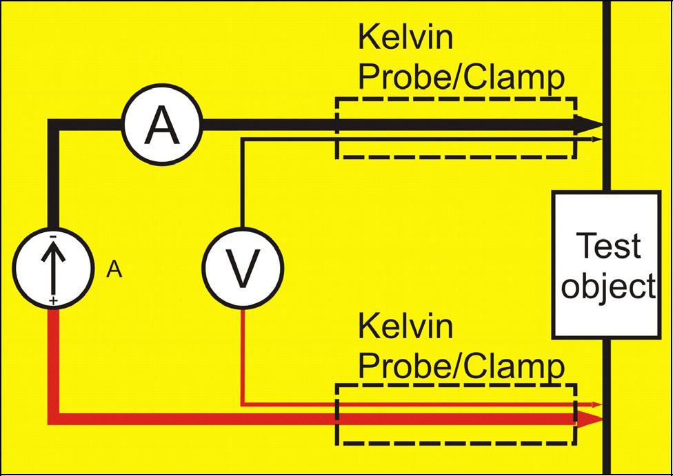 開爾文探頭(包含在BD-59090內(nèi))在4線開爾文測(cè)試中被使用。這是測(cè)試電阻連續(xù)性,確保所有接觸和導(dǎo)線電阻得到補(bǔ)償?shù)姆椒?,大大加?qiáng)了測(cè)試的精度。每一個(gè)開爾文探頭裝有兩個(gè)末端,一個(gè)用于產(chǎn)生電流,另一個(gè)用于測(cè)量微弱的電壓存在