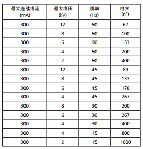 ?下表是被測(cè)試品電容量、測(cè)試電壓和頻率之間的關(guān)系