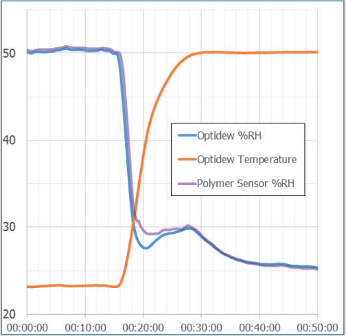 在氣候試驗箱測量時,Optidew能夠直接跟蹤溫度和濕度的變化,不用像傳統(tǒng)的冷鏡儀表那樣耗時。