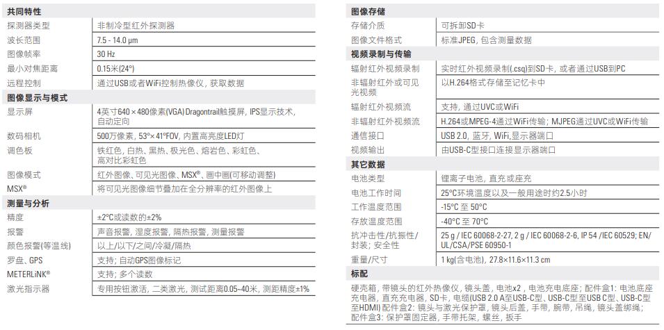 ? *高可達640×480像素的高分辨率紅外探測 器,可獲得清晰、詳細的圖片信息。