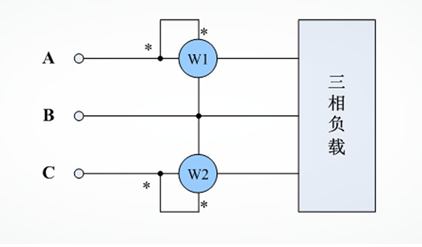 圖1.二瓦計(jì)法功率表接線示意圖