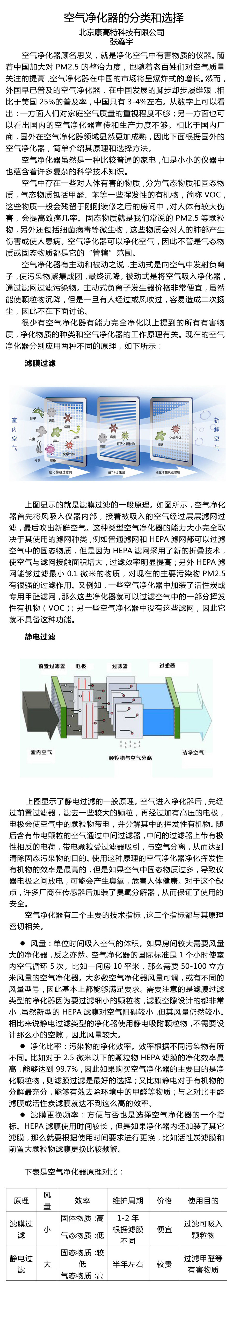空氣凈化器的分類和選擇